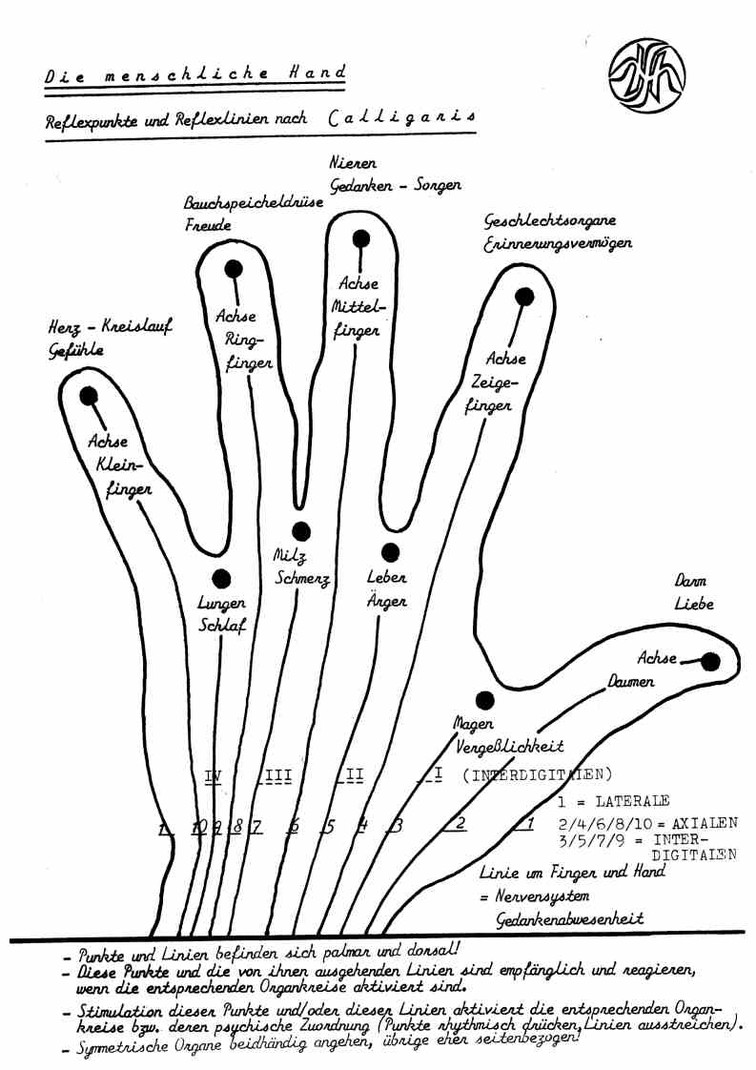 Ziele: Auffinden und Stimulieren des "Bauchspeicheldrüsenpunktes" am Ringfinger und Verständnis des dermo-viszeral-psychischen Reflexes.